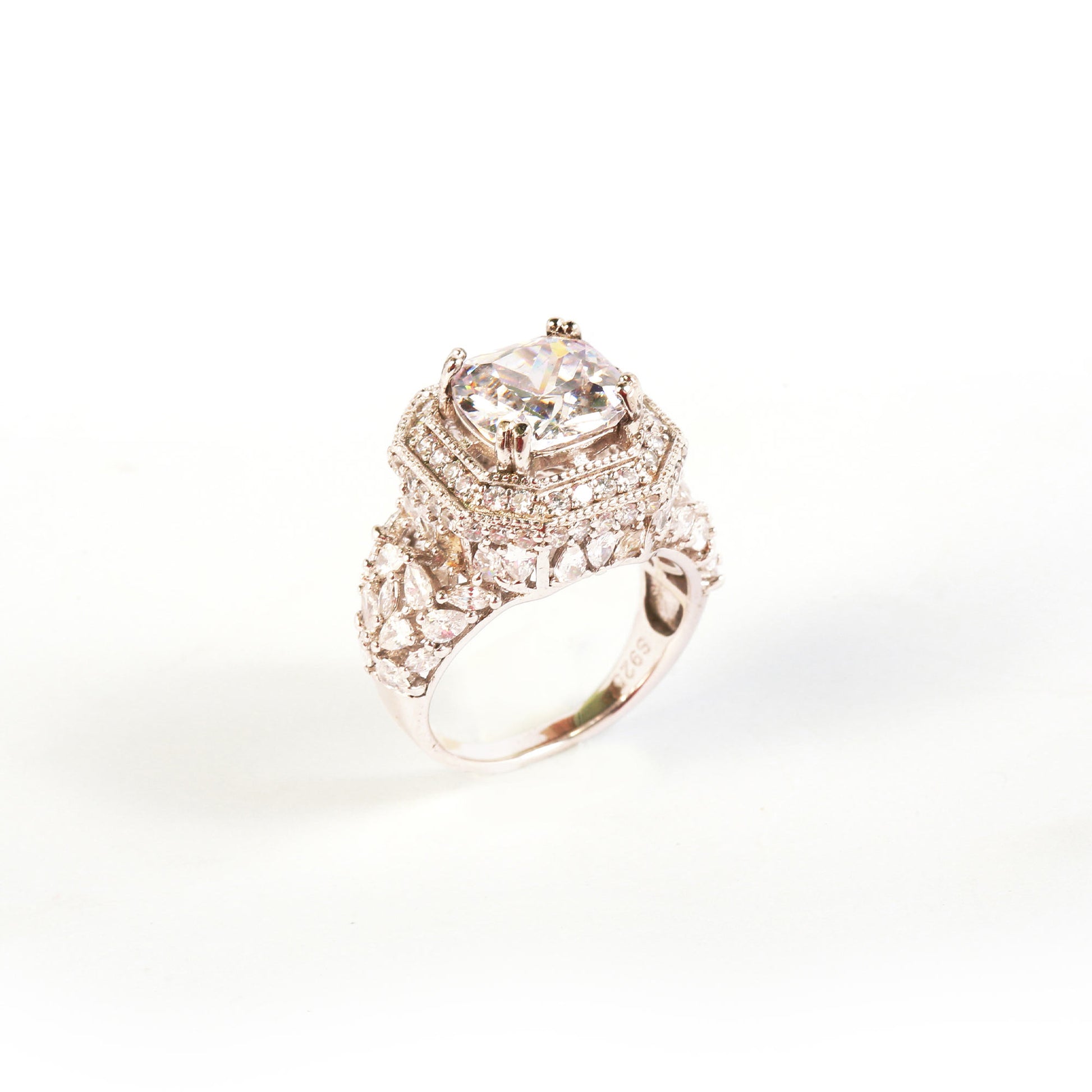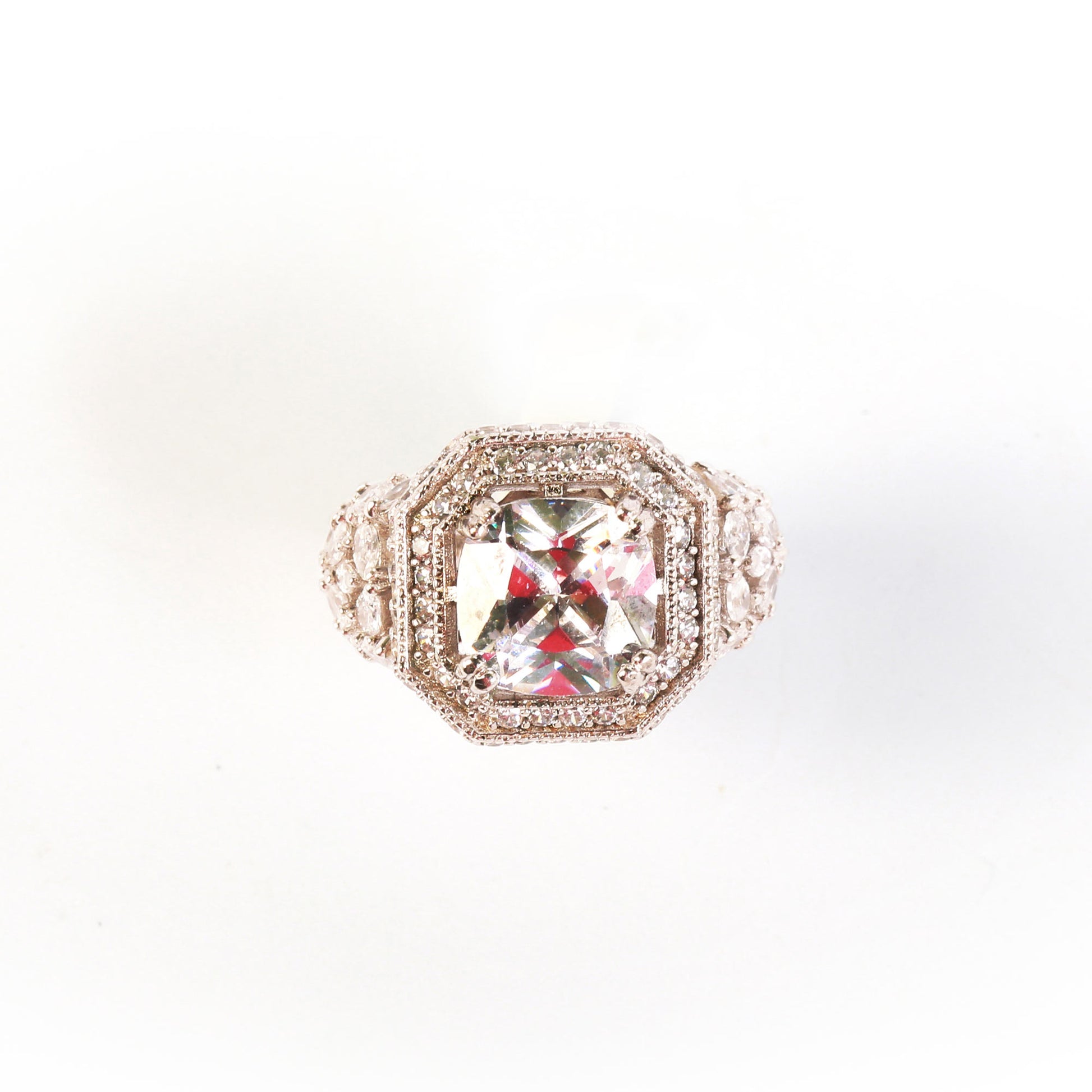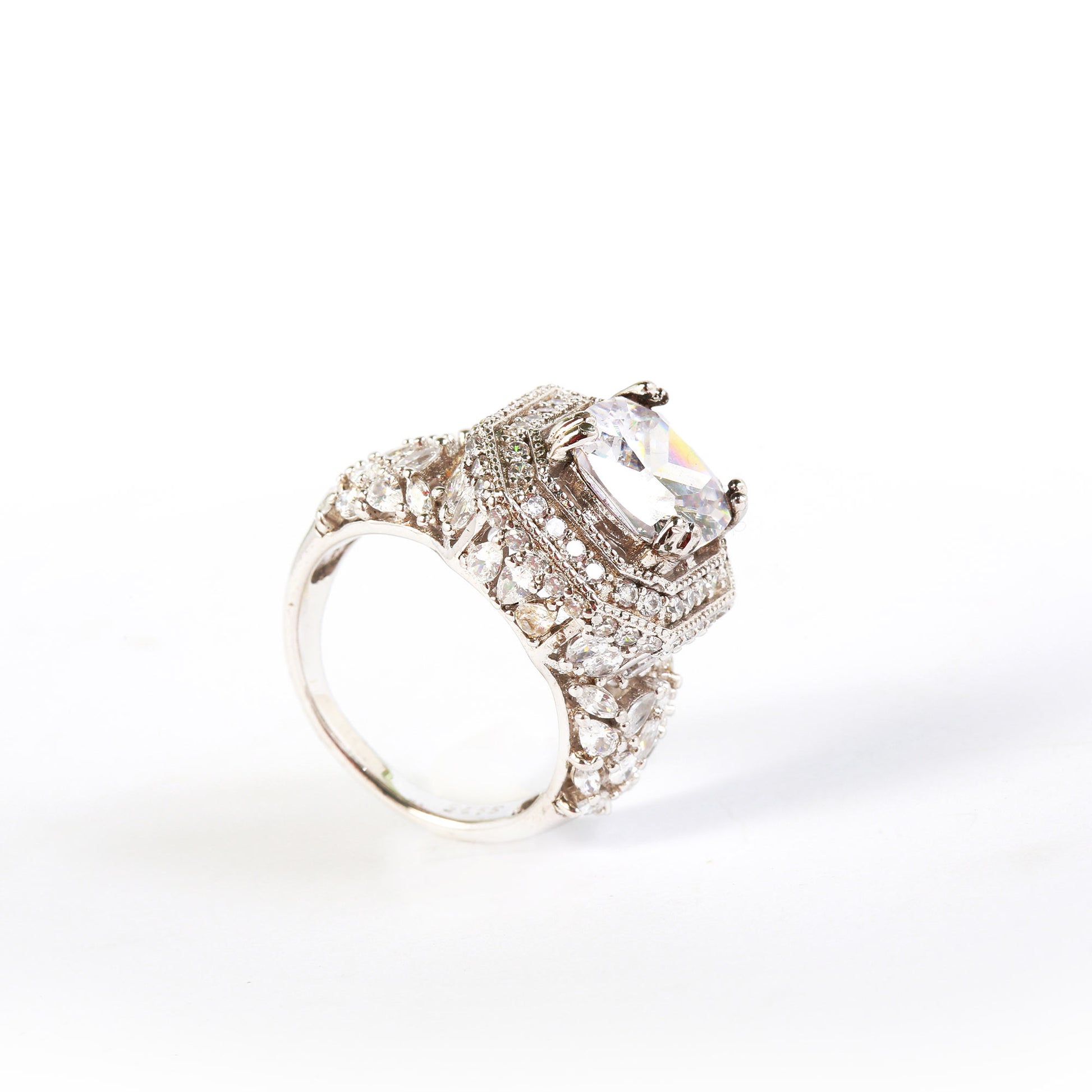A timeless classic, this silver enchantment ring features a radiant stone surrounded by delicate band of fine stones. Minimal yet eye-catching, it adds the perfect shimmer to your hands with grace and charm.