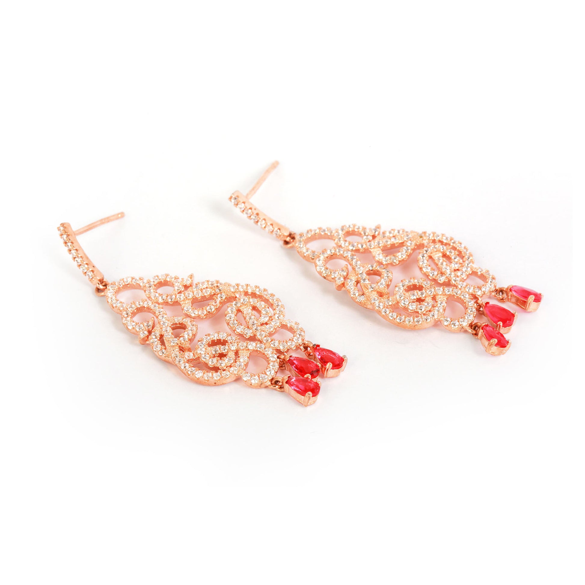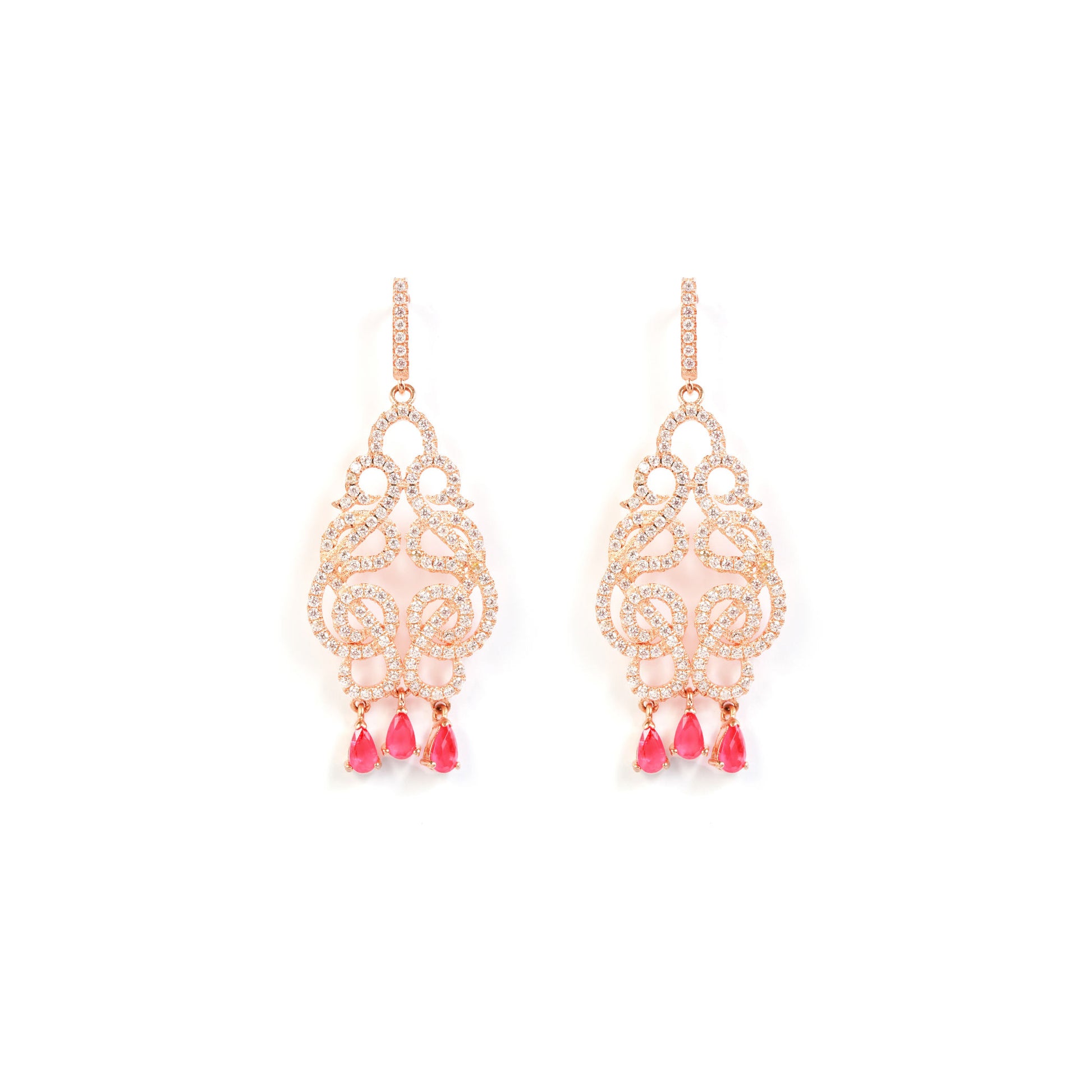 Suspended beneath are three deep red rubies adding a touch of color. Perfect for weddings, or adding a luxurious accent to traditional attire.