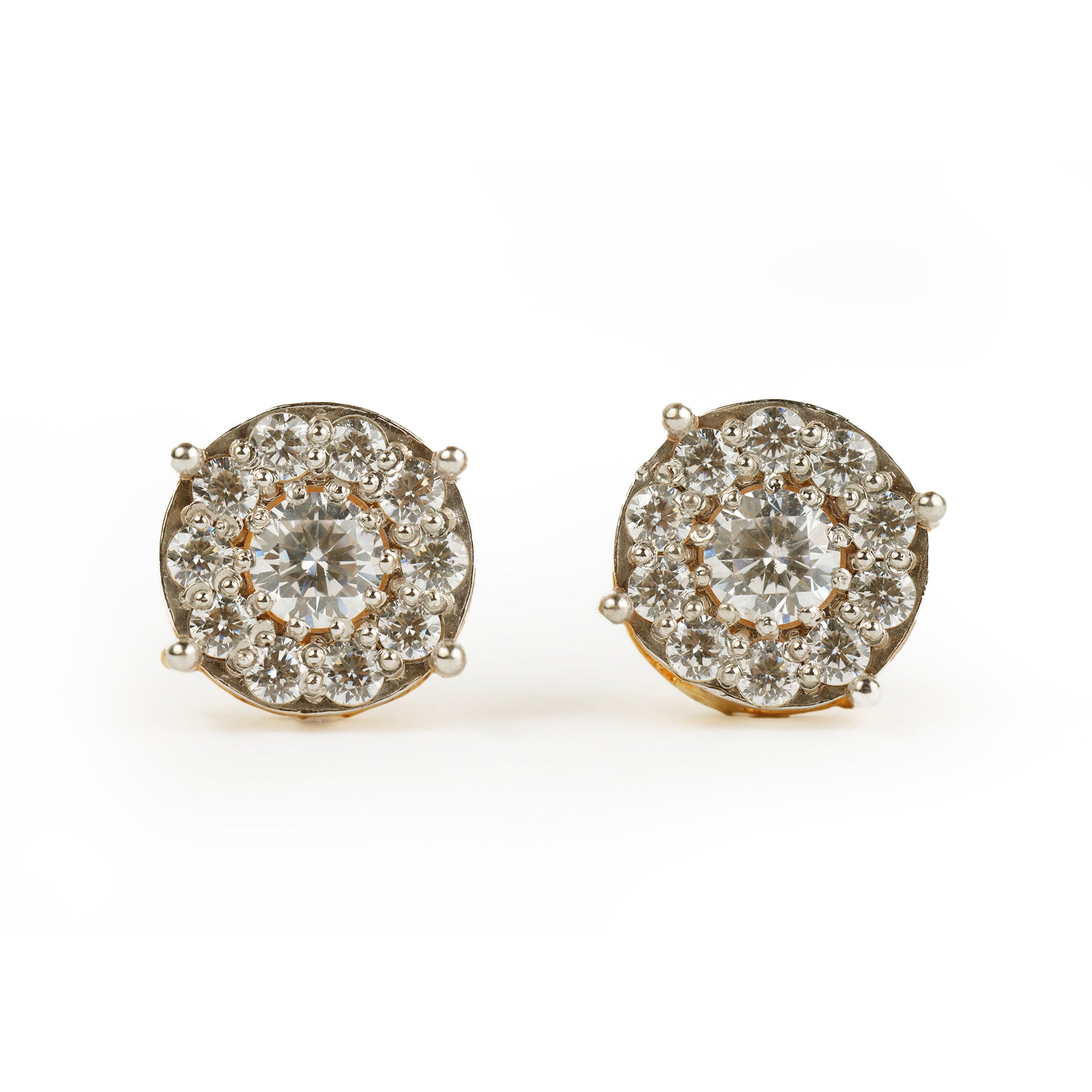 Statement silver-tone floral earrings featuring a central cluster of round stones with twelve elongated petals intricately set with micro-pavé and baguette-cut clear crystals.