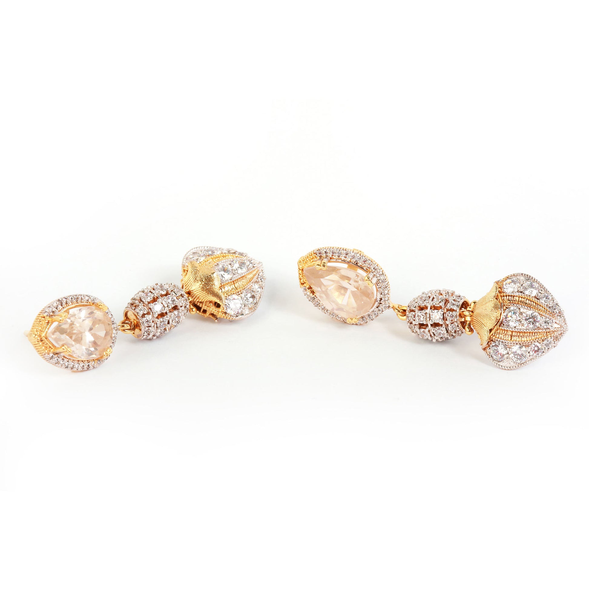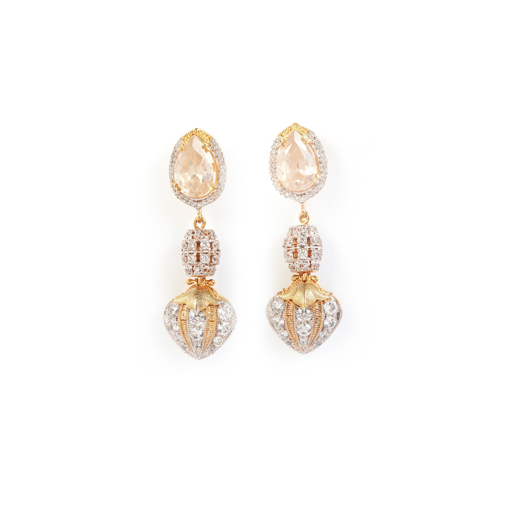 A blend of charm and versatility, Zariah Drops features mixed tones of silver and gold. The fusion of metals makes these earrings effortlessly pairable with a wide range of outfits - from modern eastern looks to traditional ensembles.